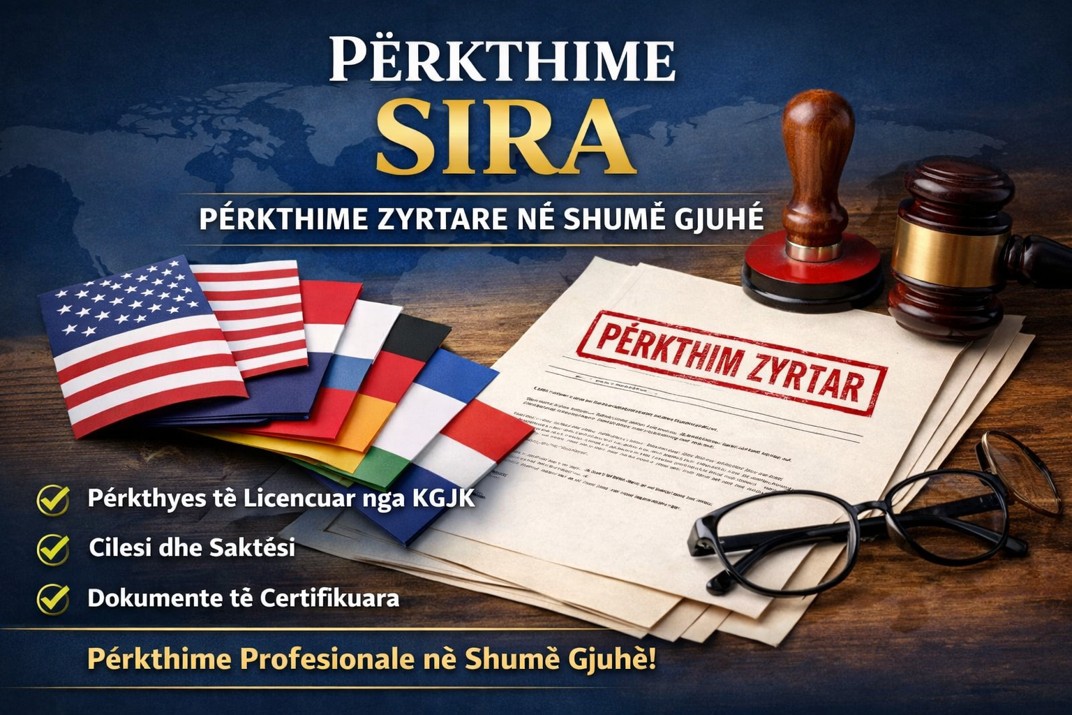 Në një botë gjithnjë e më të ndërlidhur, përkthimet e sakta dhe të certifikuara janë thelbësore për dokumentet tuaja personale dhe profesionale. Përkthime Sira ofron shërbime të përkthimit zyrtar në një gamë të gjerë gjuhësh, duke garantuar cilësi, saktësi dhe pranueshmëri institucionale.